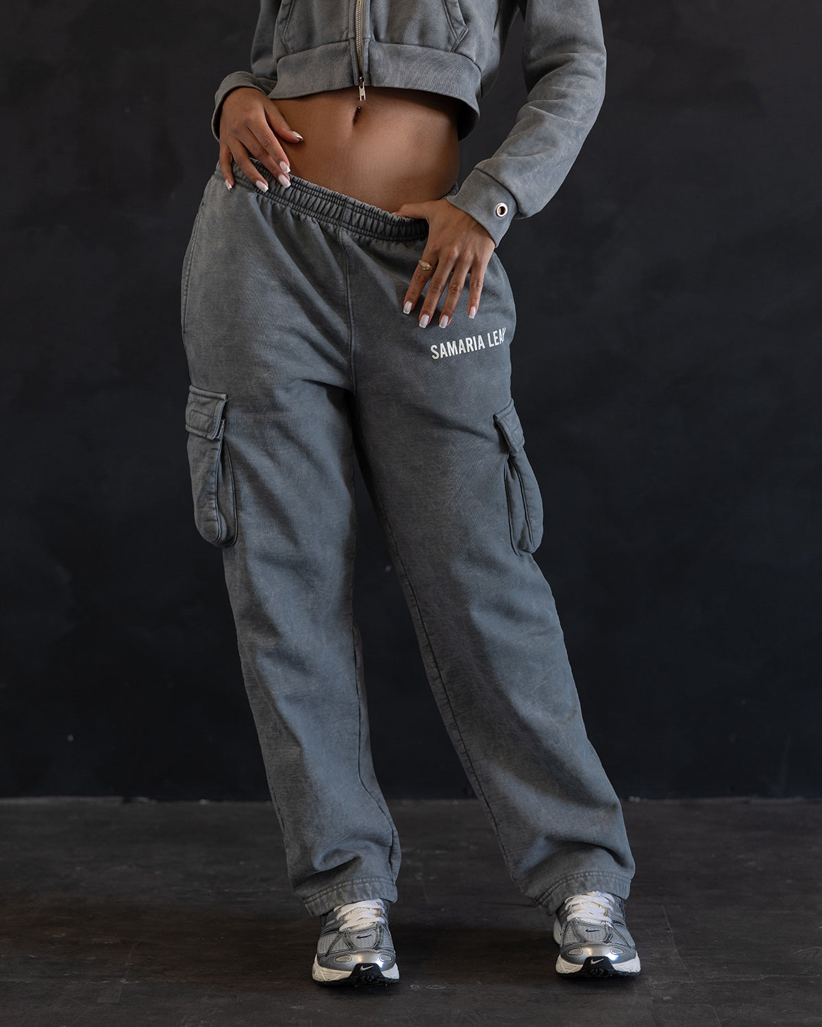 The sl logo sweats in 'steel' feature oversized cargo pockets with a straight leg and a relaxed fit. This style is perfect for those who are taller or prefer a longer inseam.